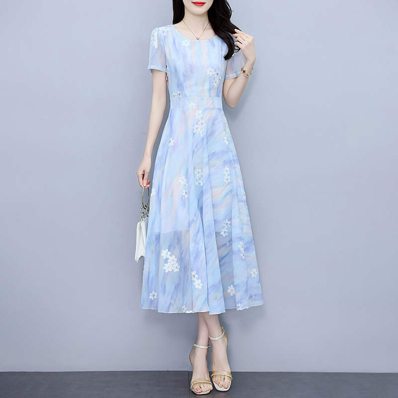 Gwe7381軽熟風刺繍シフォンワンピース女性2025夏新作ファッション