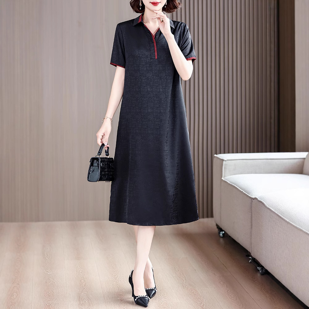 Blx9633レトロジャカード黒ワンピースレディース2025夏新作ファッションゆったり着痩せミディアムドレス