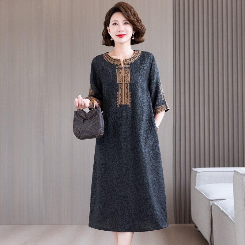 Qyfs 8987レトロファッション重工刺繍ワンピース女性2025夏新作母装改良小黒スカート