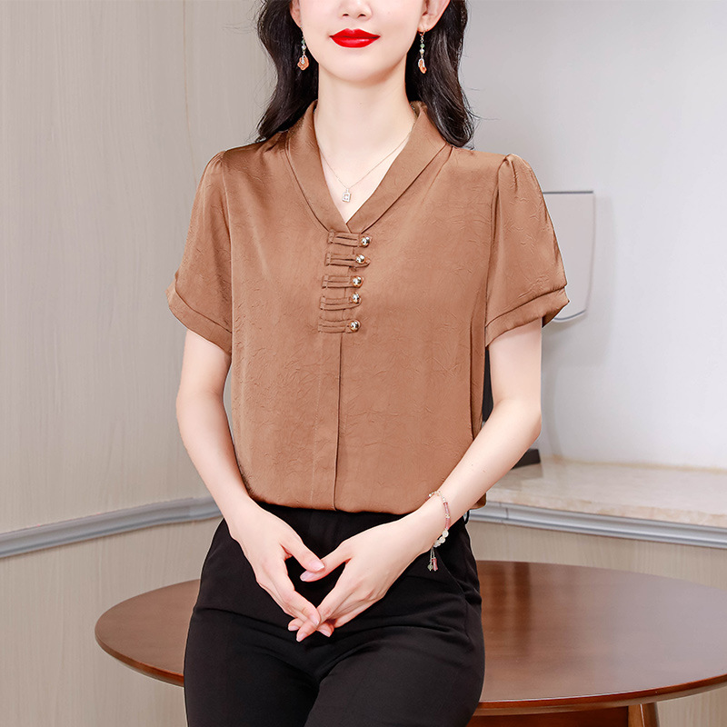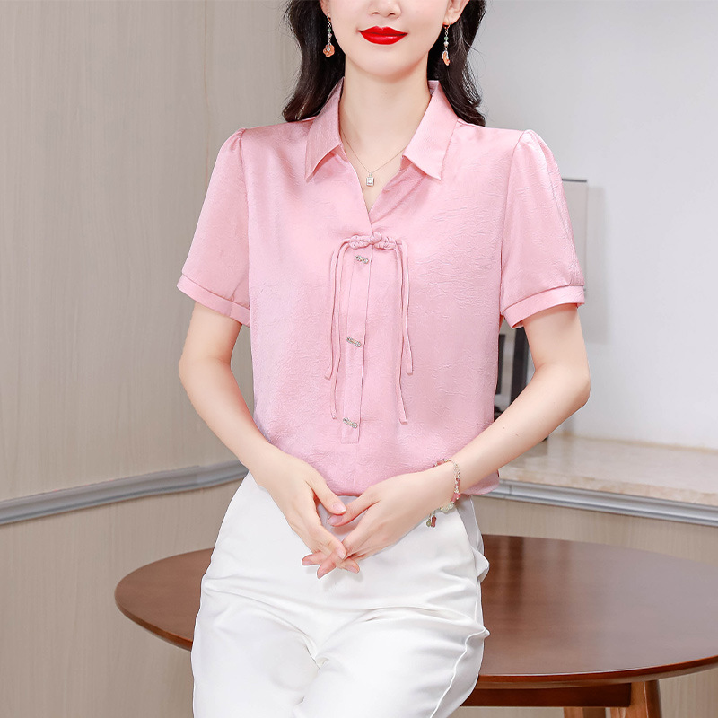 Dydd9040復古ジャカードシャツ女2025夏の新型ファッション洋気新中国式盤ボタン純色シャツ