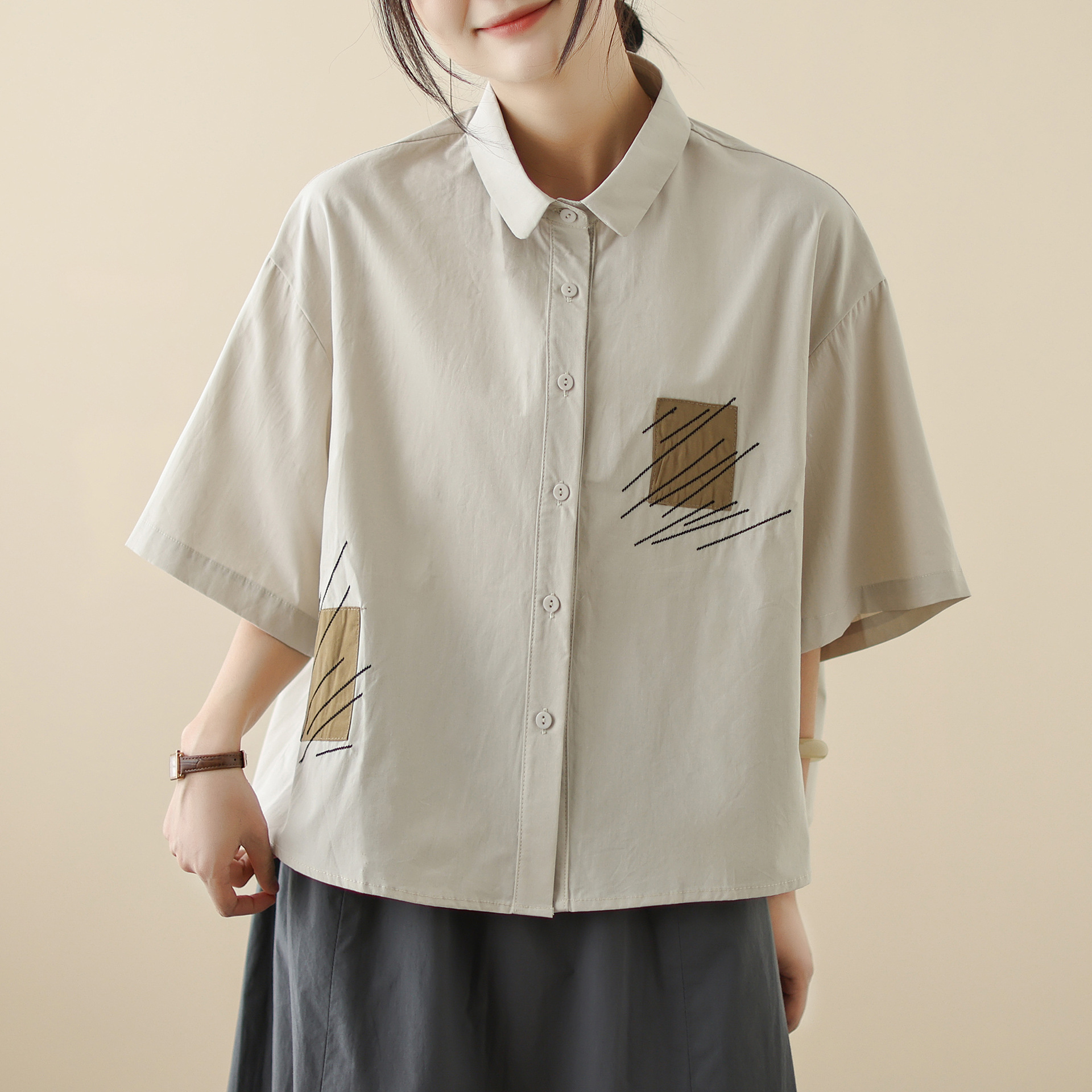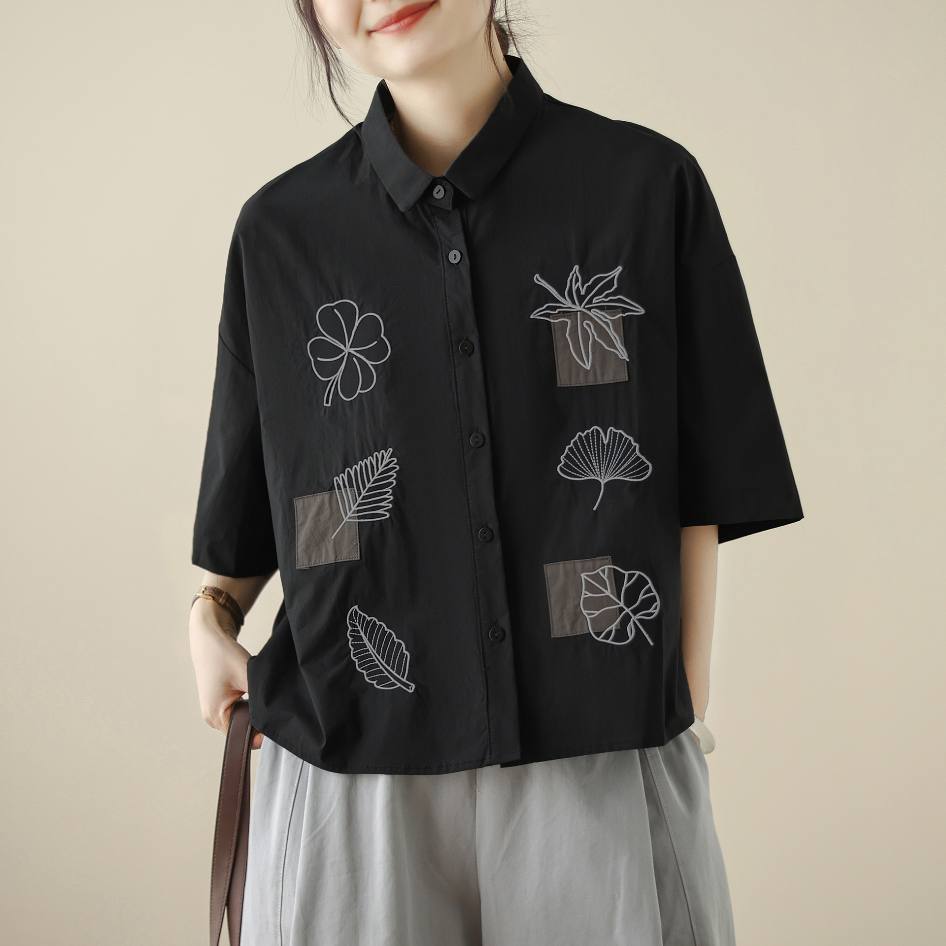Xnyr3015日系大衆デザイン感刺繍シャツ女性2025夏の新型ファッション百合半袖上着