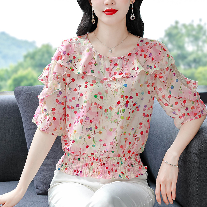 Dydd3123ファッション減齢甘美砕花シャツ女2025夏の新型気質百合雪紡織上着