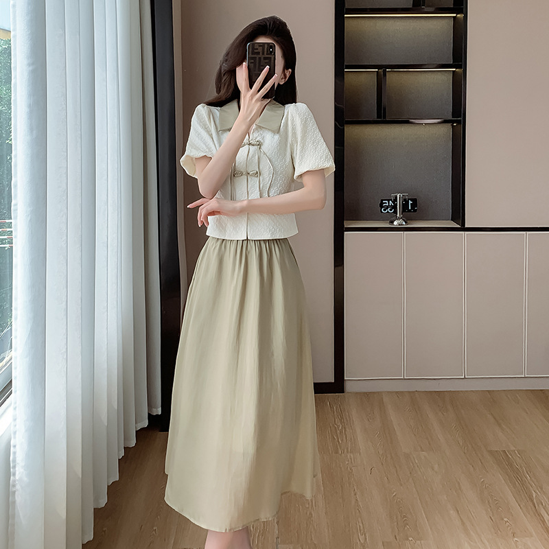 HmgS541高級感ファッション新中国風盤ボタンスカート2点セット女性気質名媛スーツスカート