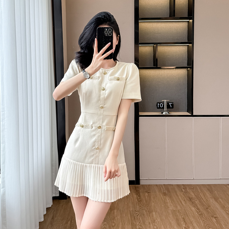 Yys2000フランス風気質小香風ワンピース女性2025夏の新型ファッション修身ウエストロングスカート