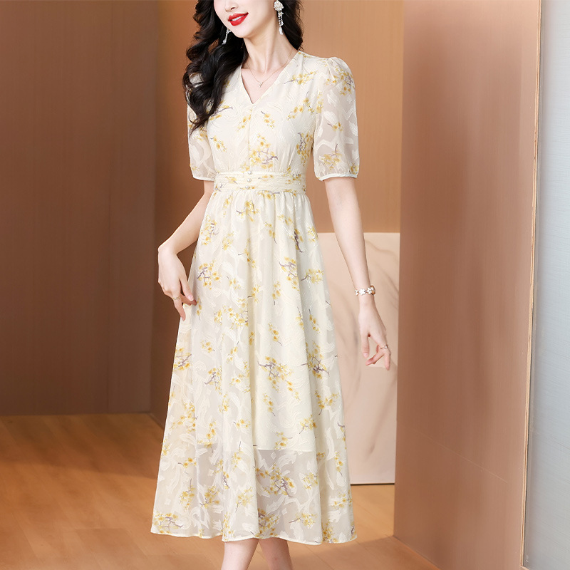 Zyfs 3903軽熟風優雅な気質が痩せたロングスカート2025夏の新型フランス休暇砕花ワンピース