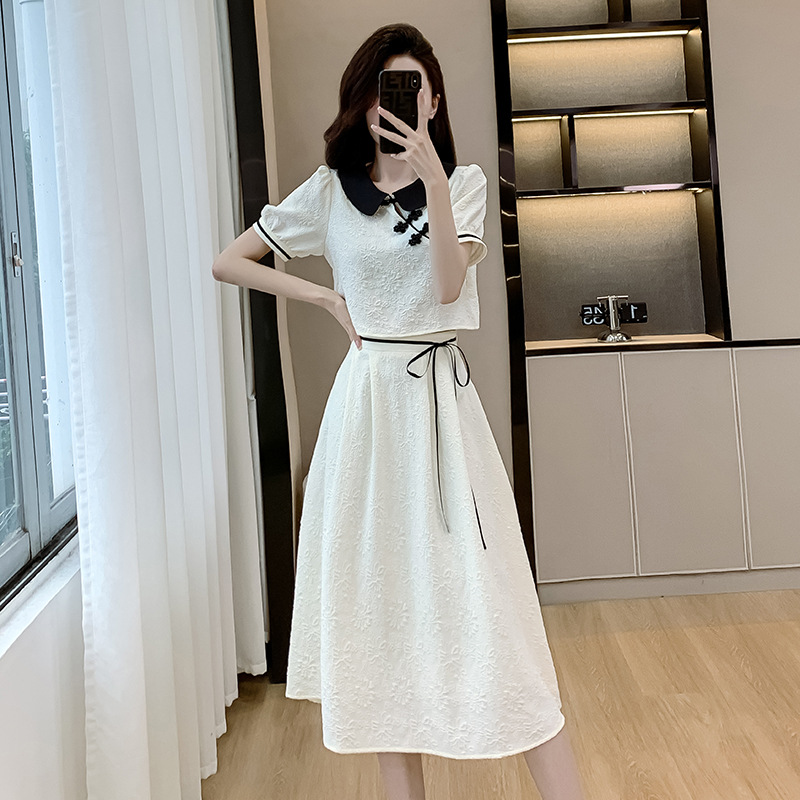 Ysg5185ファッション気質新中国風ジャケットスカート2025夏小清新児童襟ワンピース女