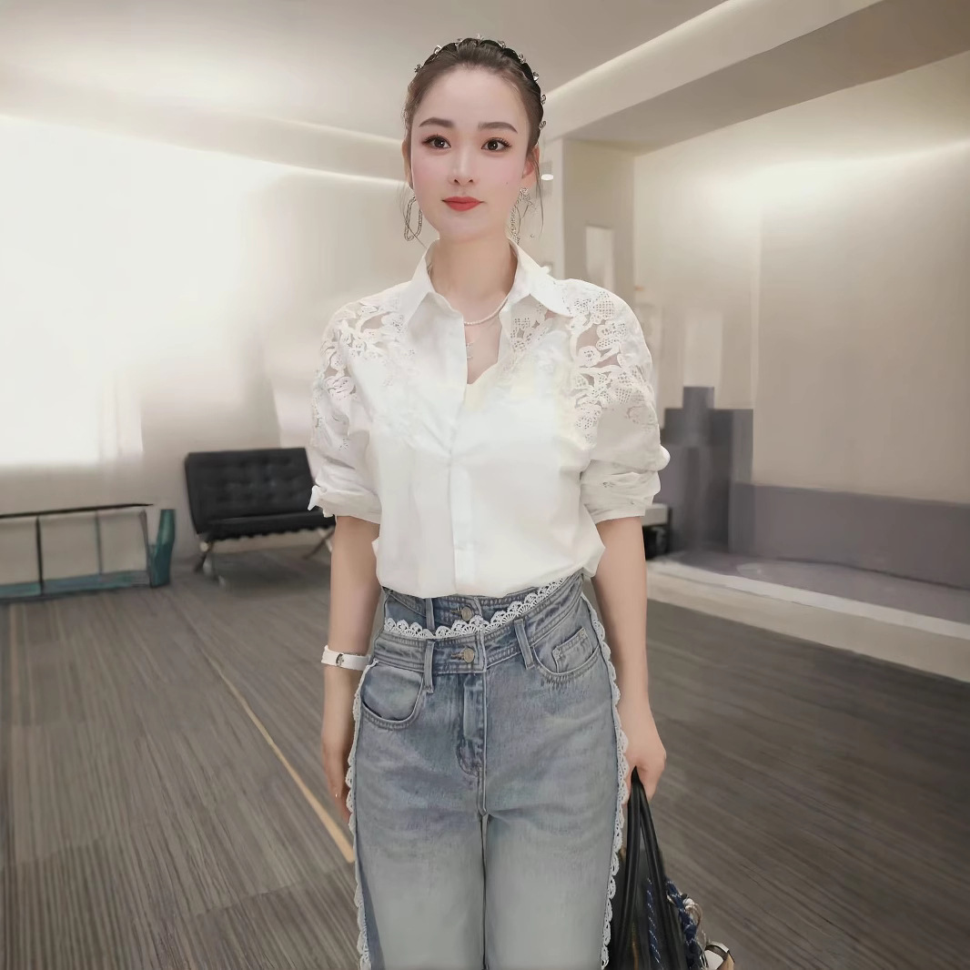 Nrm7957新中国風高級感白いレースのシャツ女性ファッション気質ウエストシャツ