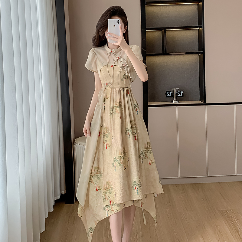 Ysg5193新中国風復古チャイナドレス2025夏女神範ブラウスストラップセットワンピース