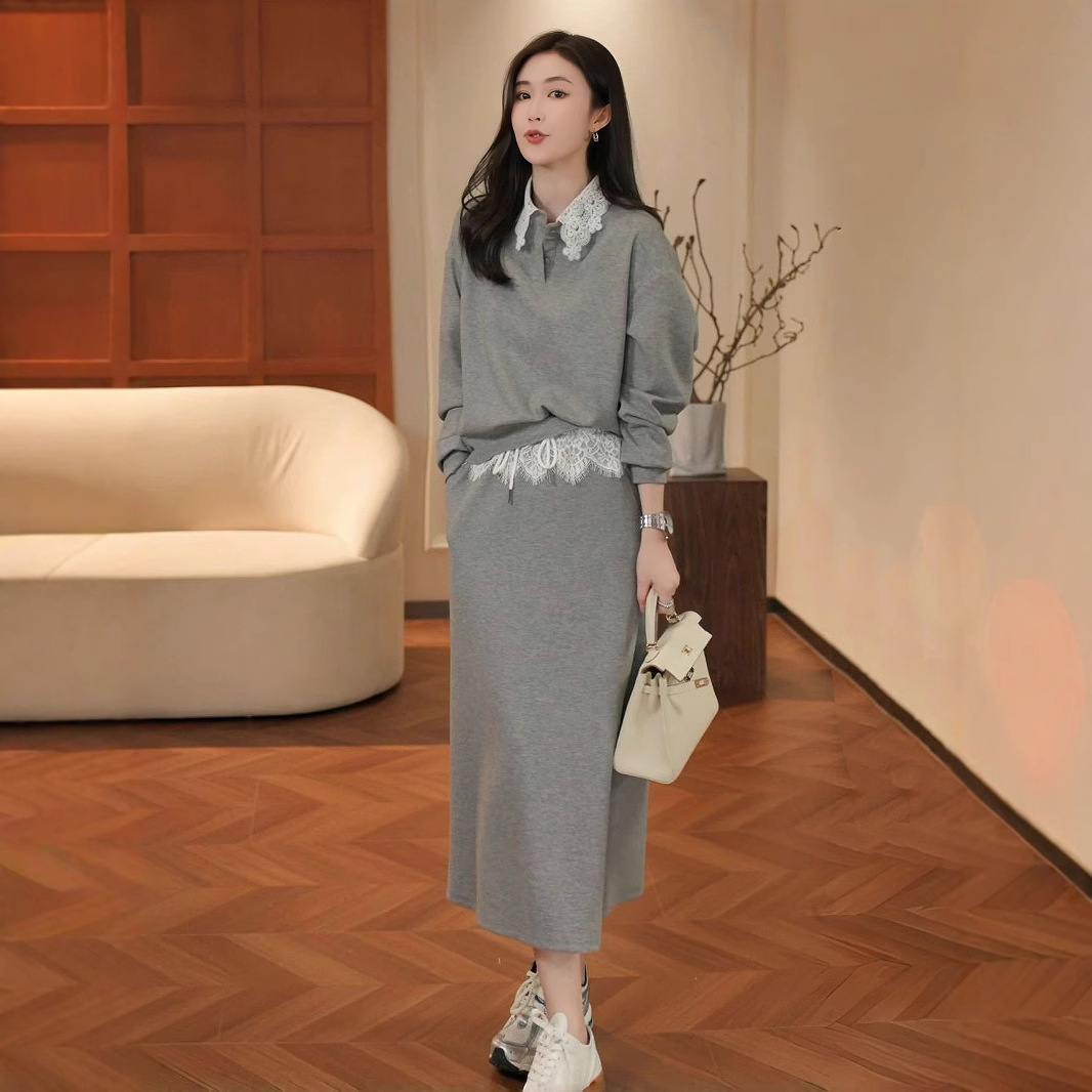 Osx1622春のファッションカジュアルなスカートのレースは上着の半身のスカートの2つのセットをつなぎ合わせます。
