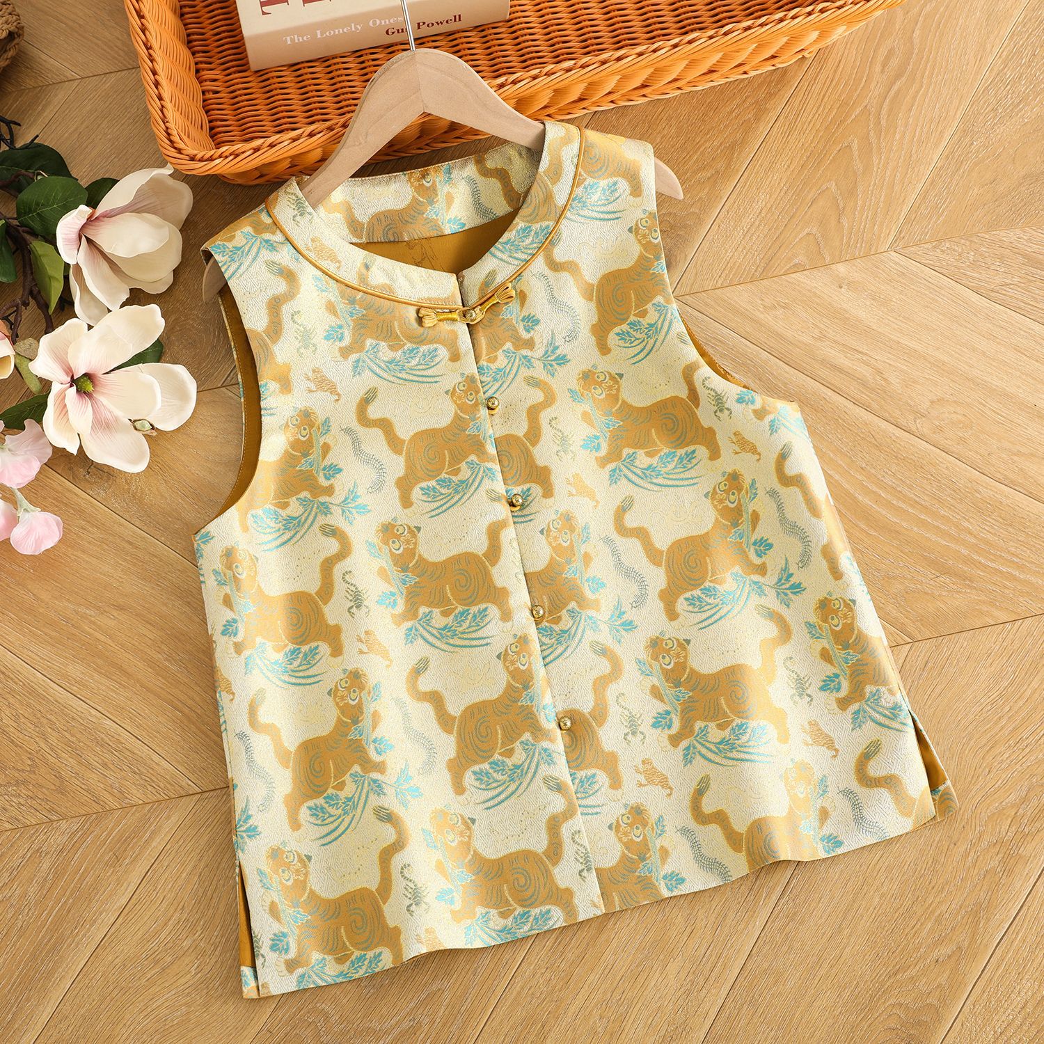 Mmc1009新中国風盤ボタン刺繍開叉馬甲女2025春新作優しい風小馬挟み