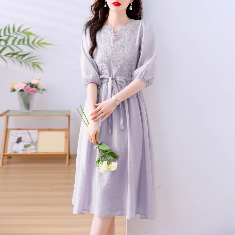 Yjr9095刺繍ワンピース女性2025春の新作気品ゆったり茶休憩スカート海辺リゾートロングスカート
