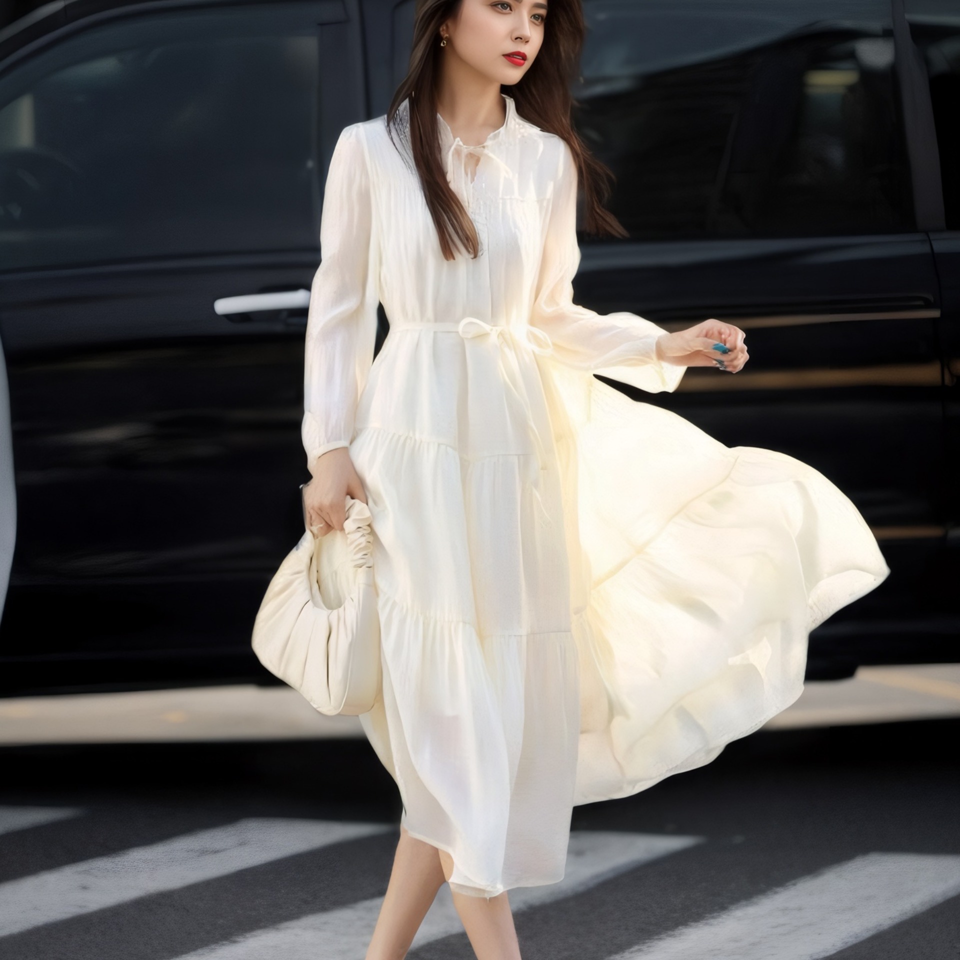 フランスのボヘミアンリゾート風ロングスカート2025春の新作ファッション気質が現れています。
