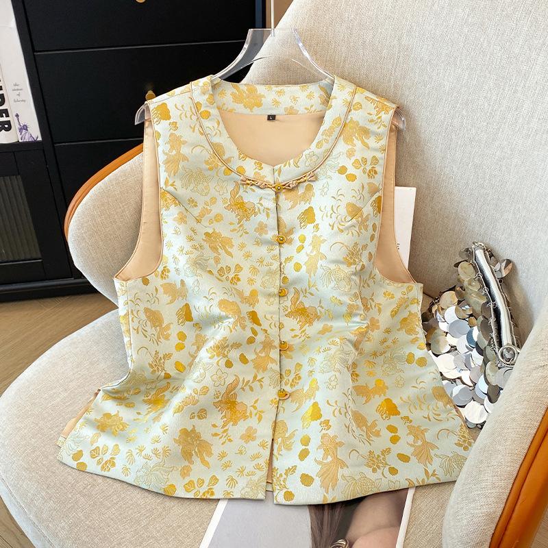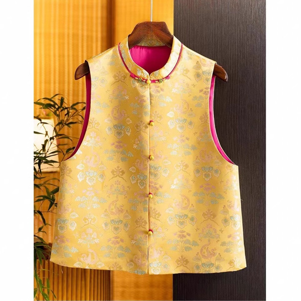 Xwf8742新中国式バックル立襟馬甲女2025春の新作の優雅な気質は馬の肩を重ねて着ます。