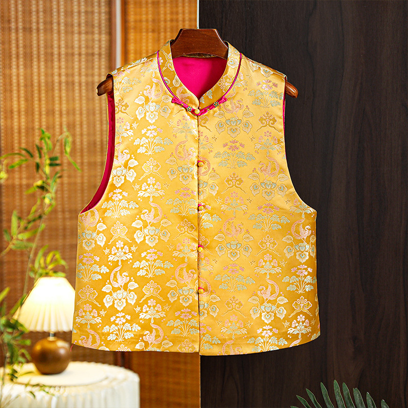 新中国式は宋錦馬甲ベストの女性2025春の新型軽国風復古盤ボタン刺繍唐装上着を模倣している