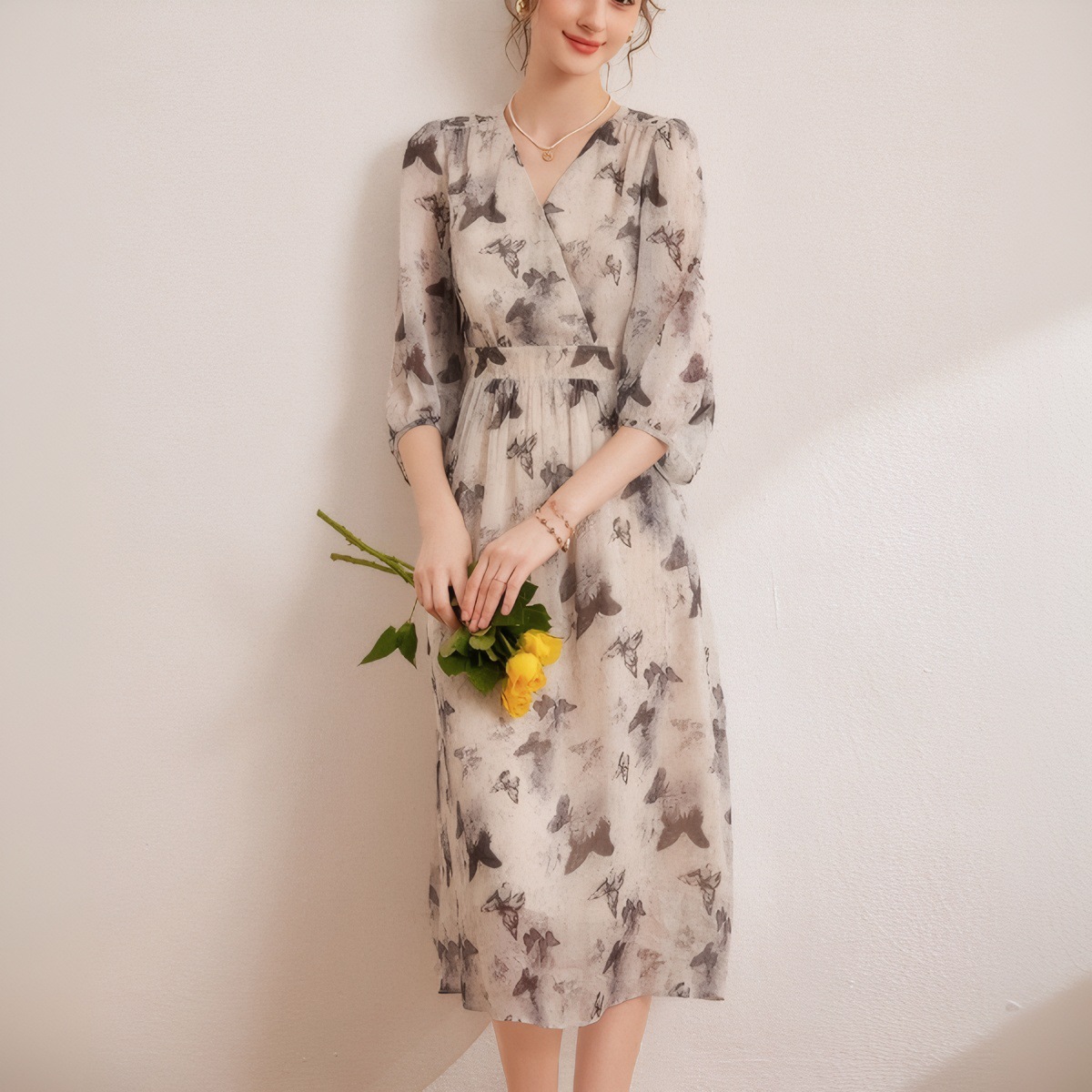 Mnm5022フランス式腰を収めて年齢を減らします。レトロな水墨画のワンピース2025春の新型の気質がゆったりしています。