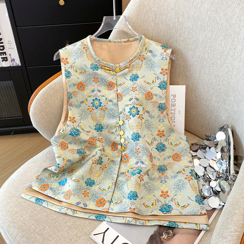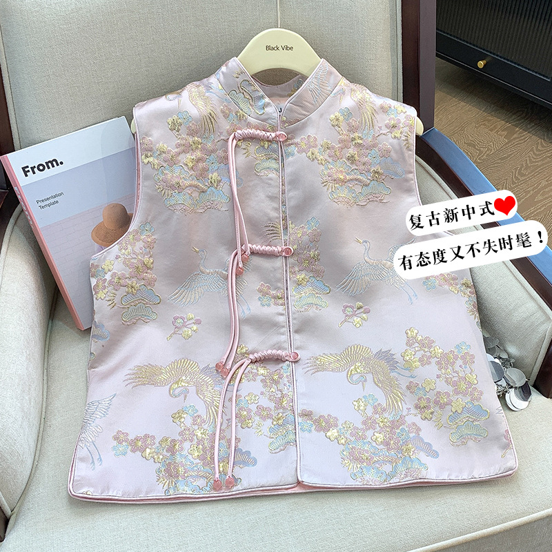 新中国式ジャカード改良チャイナドレス唐装馬甲女2025春の新型レトロ国風盤ボタンベストコート