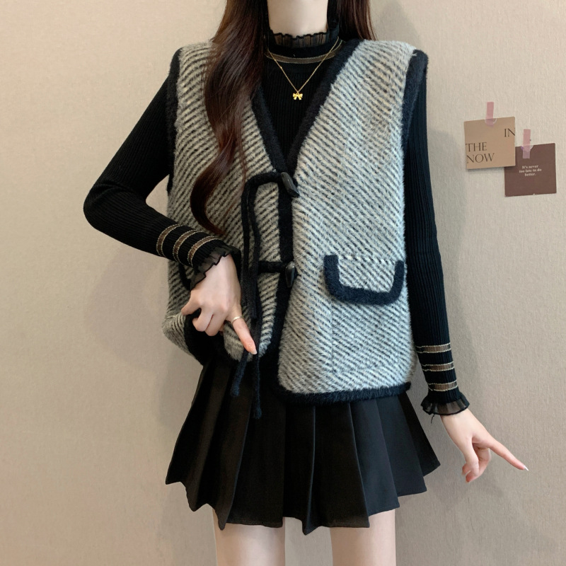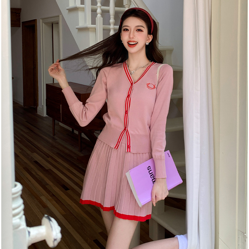 フレンチスタイルのファッションセット2025春の新作デザイン感vネックカーディガンのニットスカート2点セット