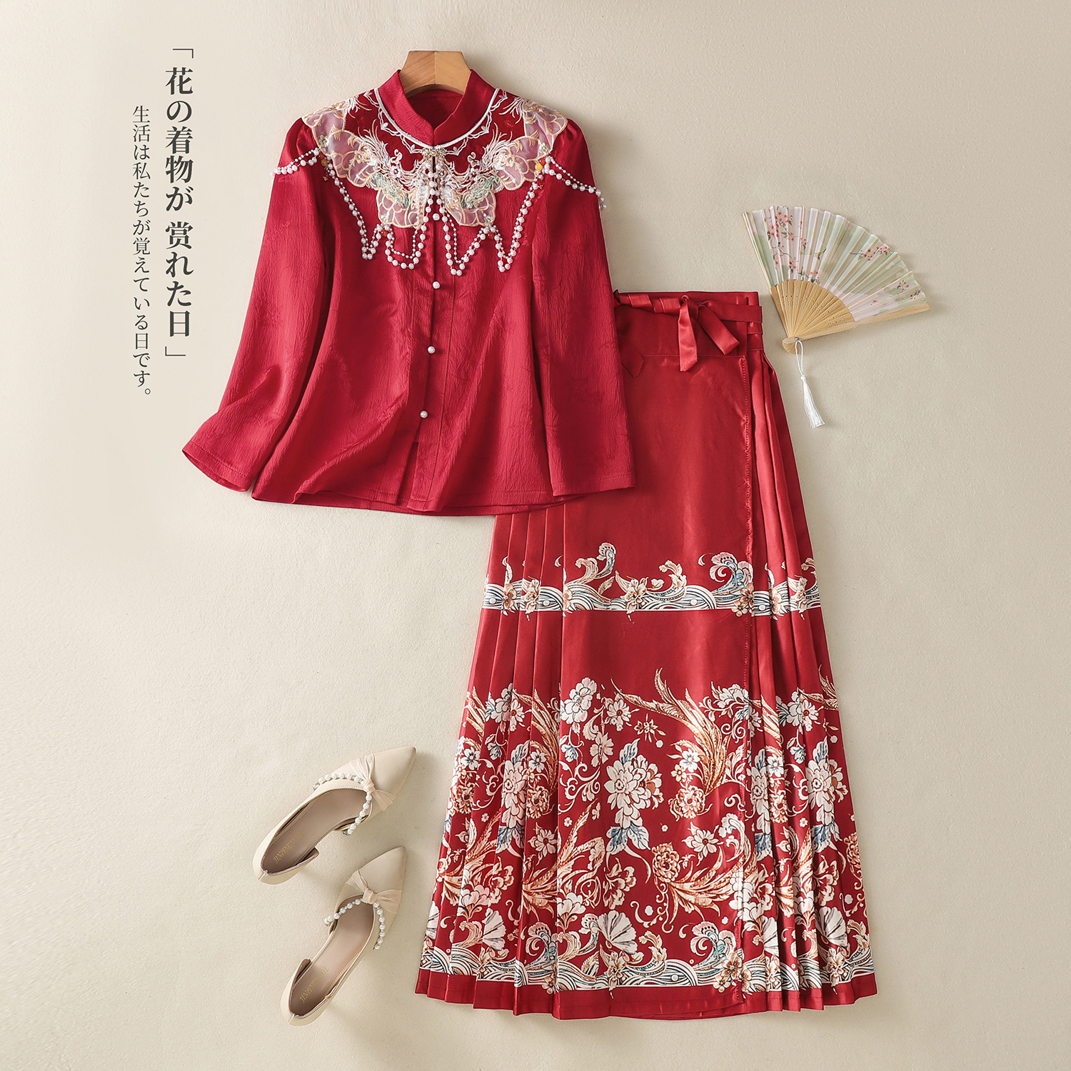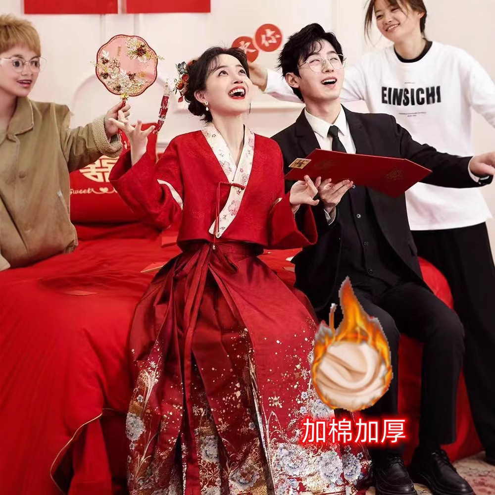 新中国式馬面スカート漢服ワンピース2024新型結婚敬酒服高級感婚約花嫁ドレス女