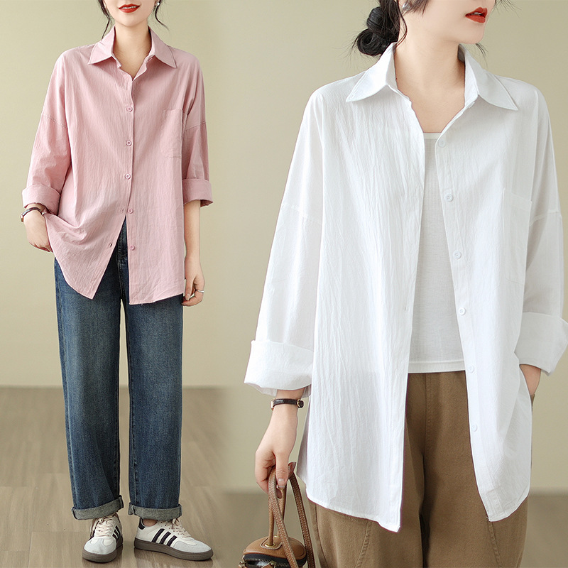 大きいサイズの婦人服2025春の新型レトロカジュアル水洗い綿シャツ彼氏風高級感ブラウス