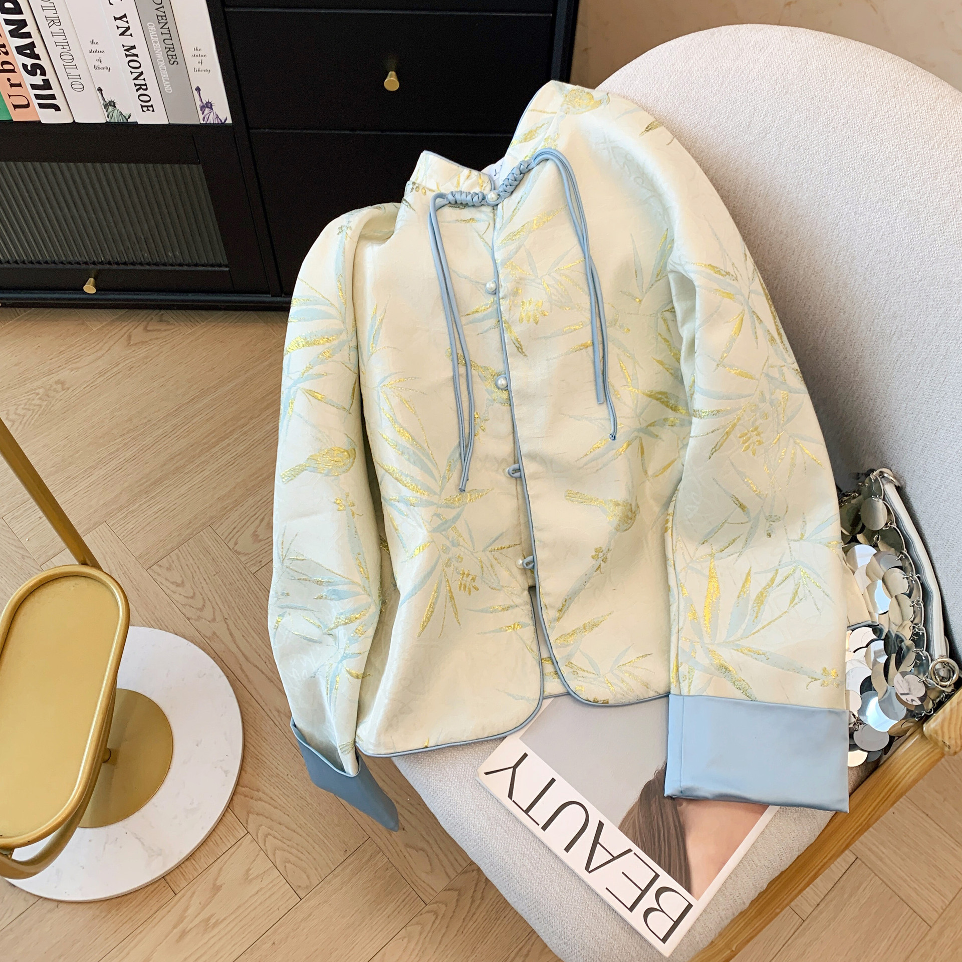新中国風箔押しジャケット女性2025春の新竹葉ジャカード流蘇浮光金影上着