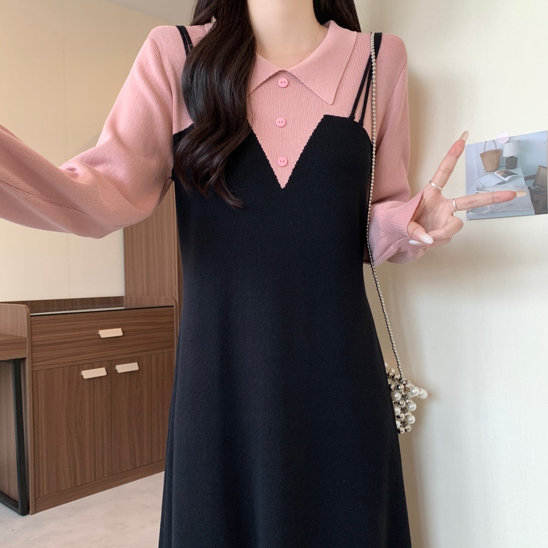 新中国式盤はチャイナドレスの長袖ニットワンピースを掛けます。