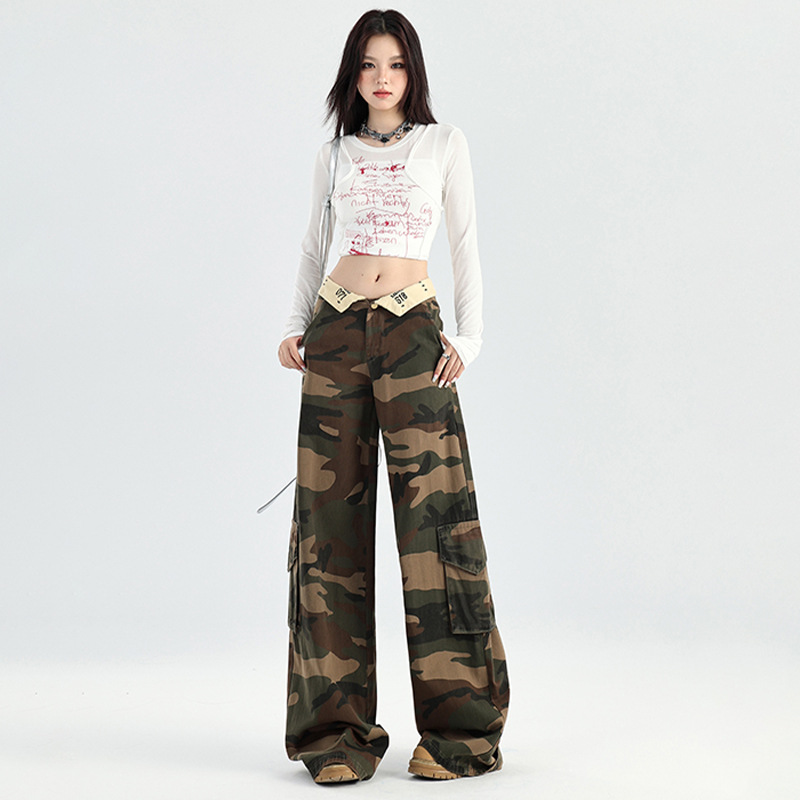 2024年秋のアメリカ式迷彩工装ズボンの女性が腰をひっくり返してデザイン感があります。