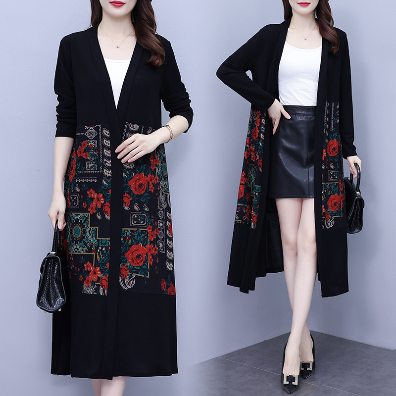 大きいサイズの婦人服の2024秋冬の新型のファッションの百合の気質はやせている花の長いタイプのコートの洋風の長袖のカーディガンを現します。