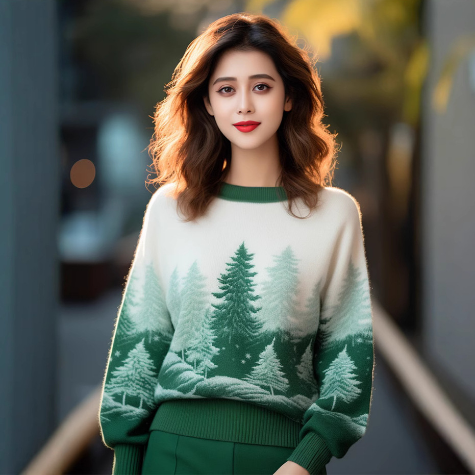 韓国版の怠惰な風のプリントのセーターの女性の2024秋冬の新型のファッションのカジュアルな百合の頭のニットの上着