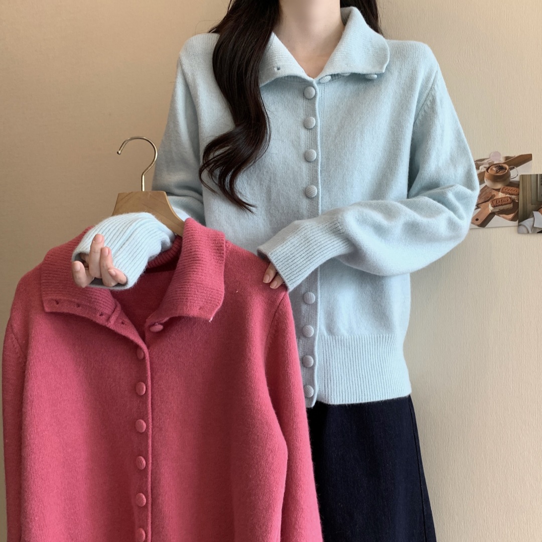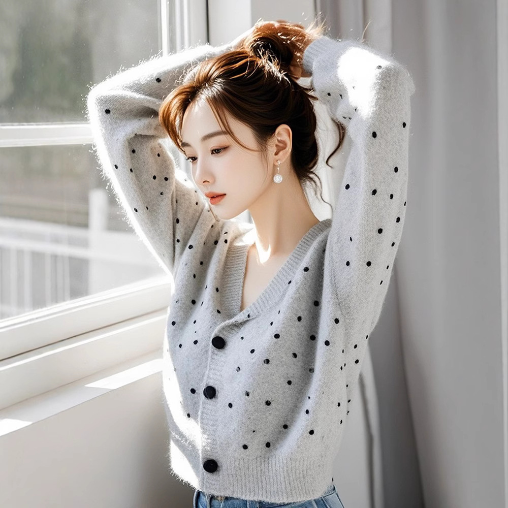 小香風灰色波点メリヤスカーディガン上着女装2024秋冬新作怠惰風カジュアルセーターコート
