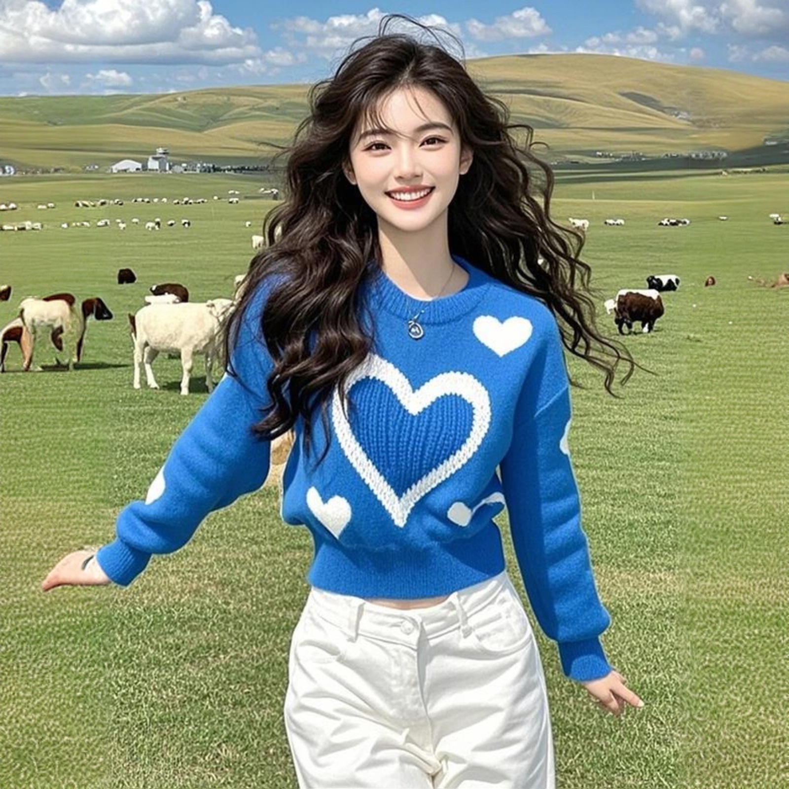 大きいサイズの婦人服の2024秋冬の新型の韓国系の甘い年齢のセーターはゆったりしています。