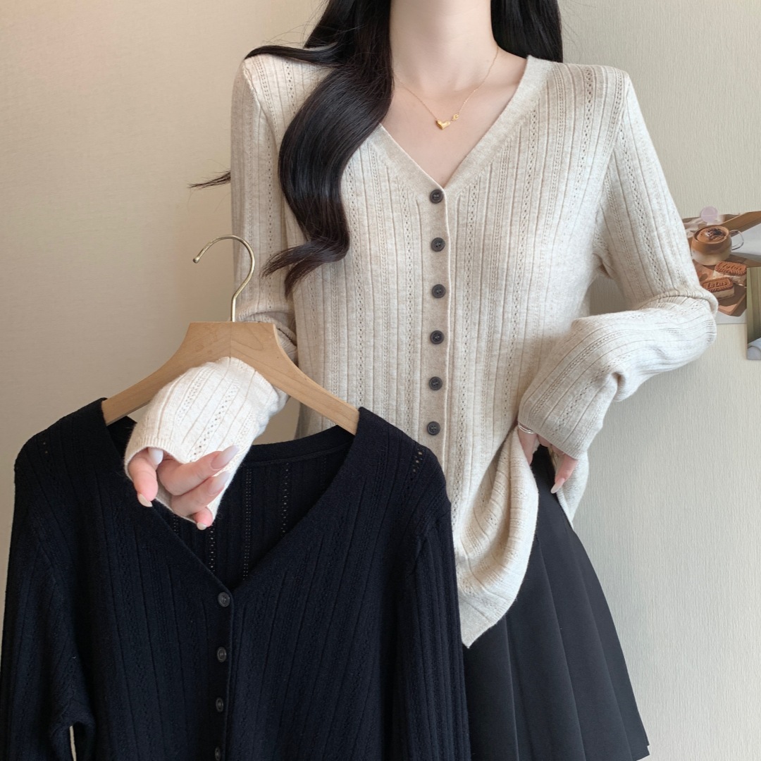大きいサイズの秋冬の新型の単列は純色のニットの太っているmmを掛けてvネックを合わせて明らかにやせています。