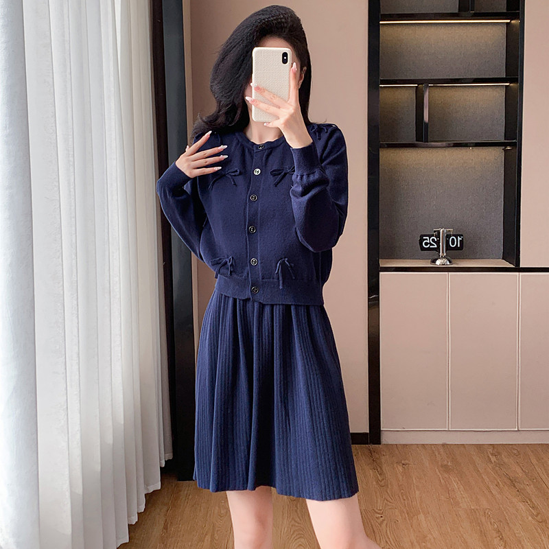 2024秋の新型ペンダントワンピースのカーディガンファッション2点セットの優しい風がスリムに見えるスカート