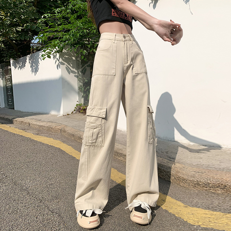 アメリカの工装ジーンズの女性2024年秋の新型ハイウエストはやせているストレートで、ゆったりとした感じがします。