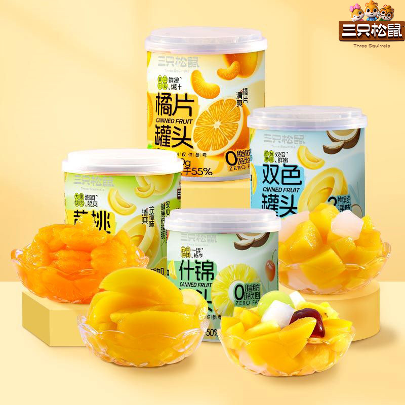 【リス三匹午後の果物 _ 黄桃レモン缶詰312g】新鮮な果物缶詰