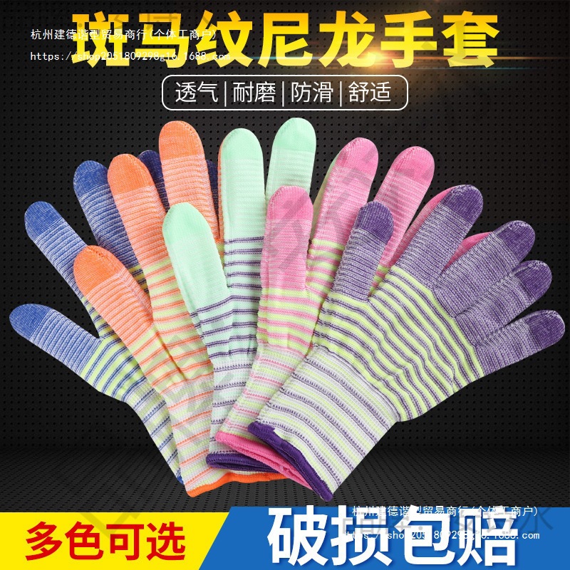 ゼブラ柄ナイロン手袋、ユニバーサル労働保護、耐摩耗性作業、通気性、滑り止め、女性用作業用薄手手袋、超新