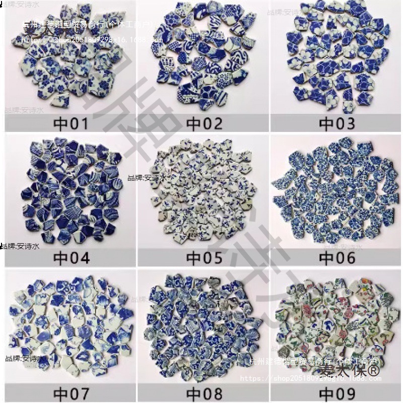 青と白の磁器の破片装飾ステッカードロップシッピング手作りデザイン庭の風景屋外特殊形状白磁セラミック