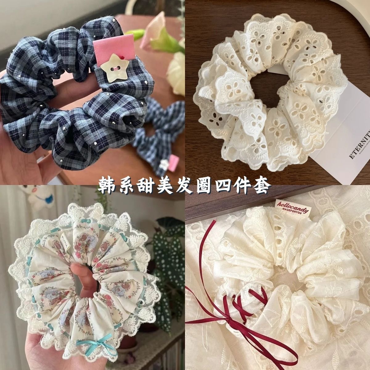 青い星のminiの小さい方のタオルのヘアリングのかわいいinsの甘い皮の筋の格子の団子の髪の毛の紐の髪飾りの女性の卸売り