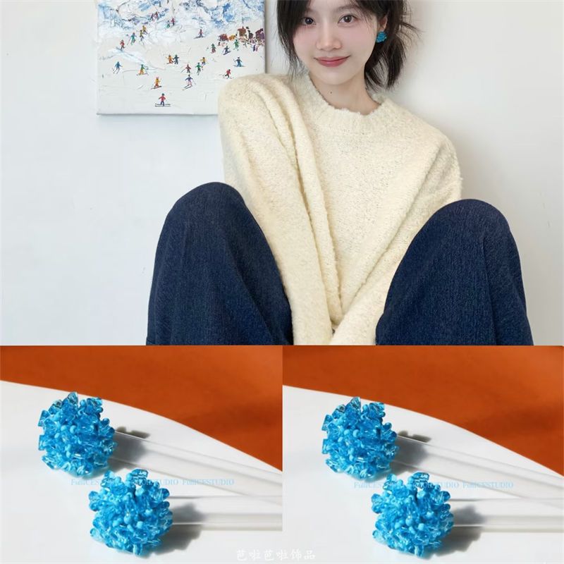 女性用の青いクールなイヤリング、春のビーズのハイエンドの軽い高級ニッチイヤリング、ホリデースタイルの美しいイヤリング