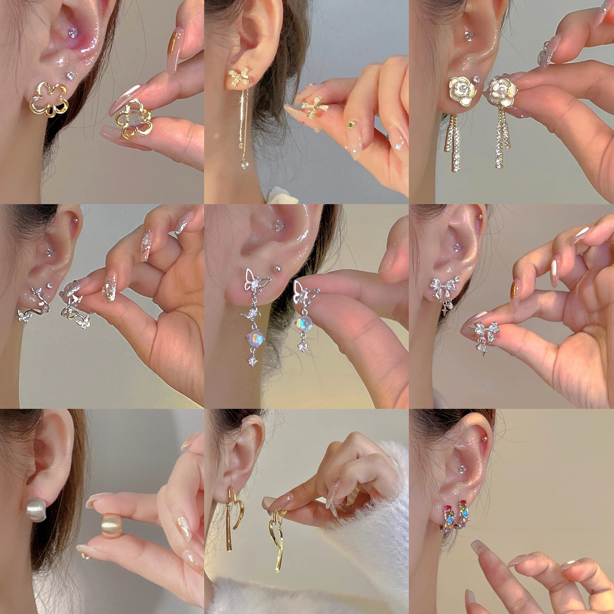 小紅の本の推薦の金の甘いクールなギャルの冷たい風の蝶の非対称のピアスの気質は簡単で軽くて豪華な耳飾りの卸売りです。