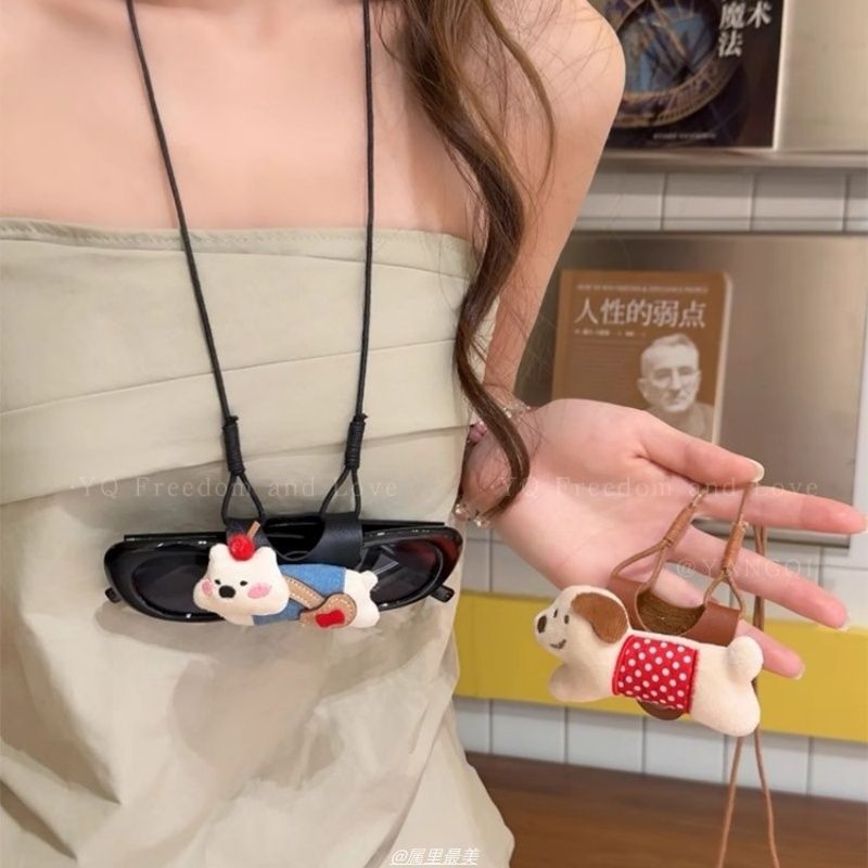 かわいい子犬ストラップメガネクリップネックレス女性の休日の旅行ポータブル落下防止サングラスクリップ首アクセサリー