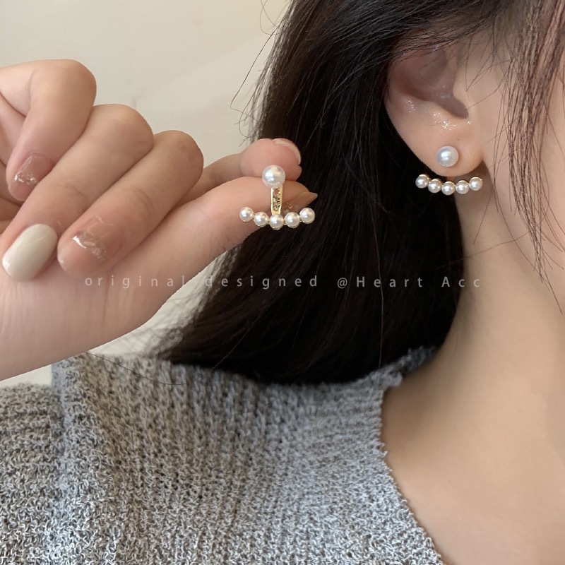 真珠のピアスをつけた女性ins風のシンプルなデザイン感があります。