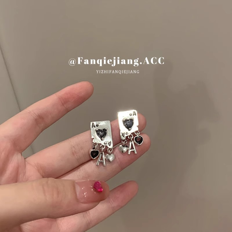甘いクールなトランプのイヤリングのフリンジの高級感の小さい大衆のデザイン感の耳飾りの気質の個性の愛の気質は精巧に卸売りします。