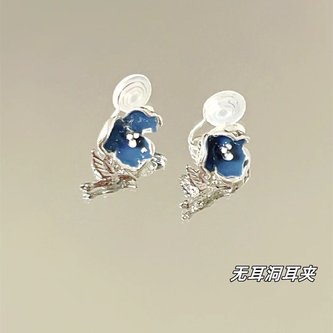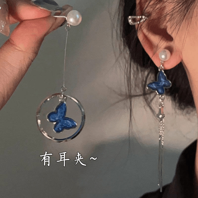 「藍蝶」清冷感非対称蝶耳クリップ円環流蘇小衆無耳洞耳クリップ軽贅沢風耳飾り
