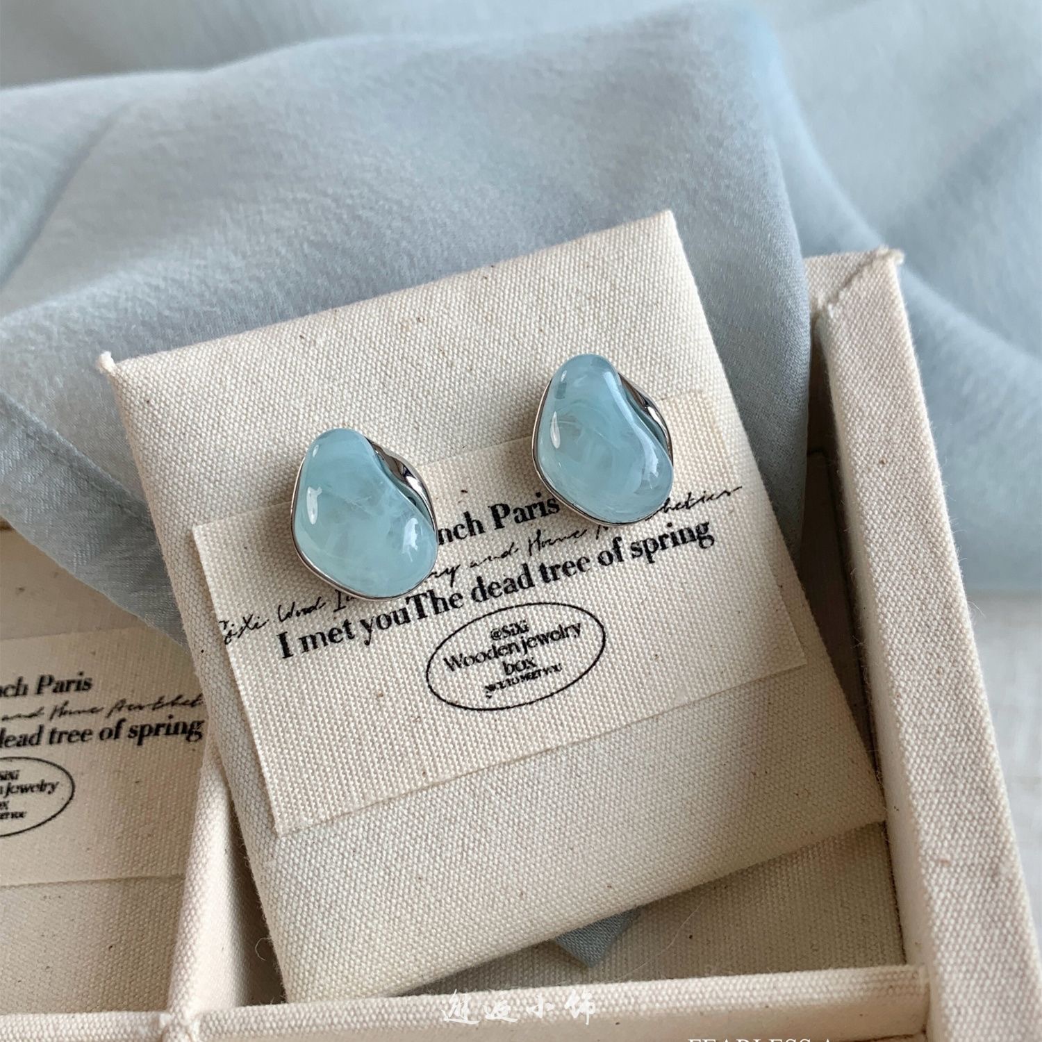 夏の氷のミントの青いイヤリングの女性の大衆の気質の高級感の気質のピアスの耳の穴がない耳飾りの女性
