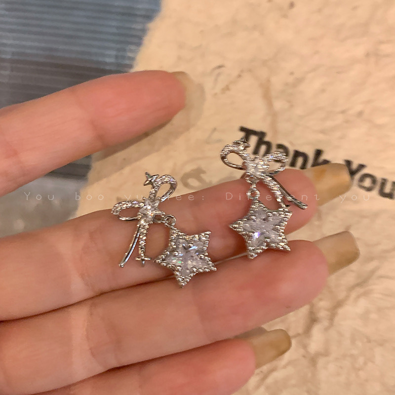 満天星 ~ 蝶結び星ジルコンイヤリング女2023新型軽豪華高級耳飾り気質精緻ピアス