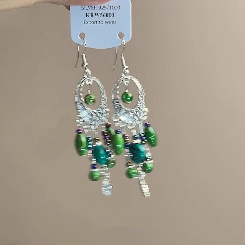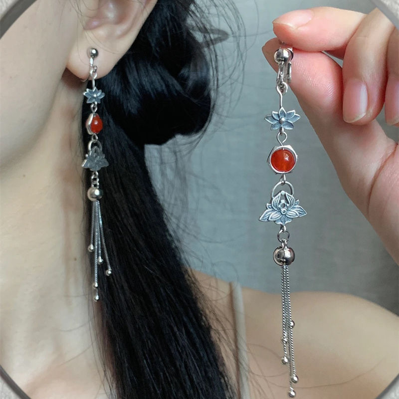 遠山黛新中国式数珠流蘇イヤリング復古民族風蔵風耳フック透かし彫り金属耳飾り新作
