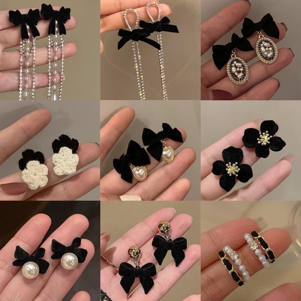 黒い植毛蝶結びのイヤリングの女性秋2023年の新型のファッションの気質の高級感の耳飾りのデザインのイヤリング