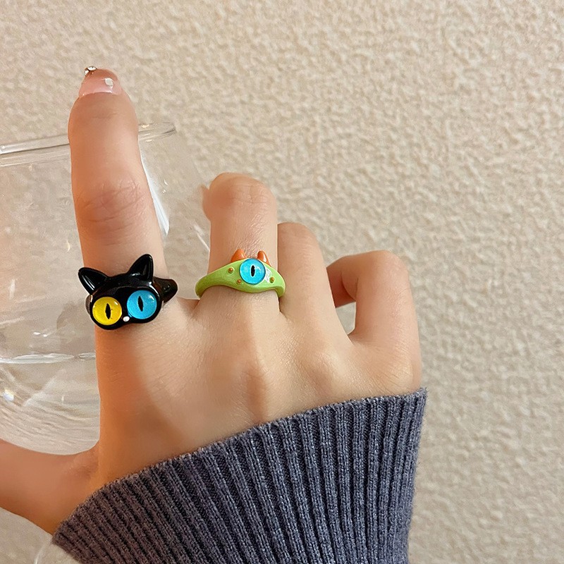 黒猫怪獣指輪女ins小衆デザイン感ファッション個性指環親友カップル尾戒