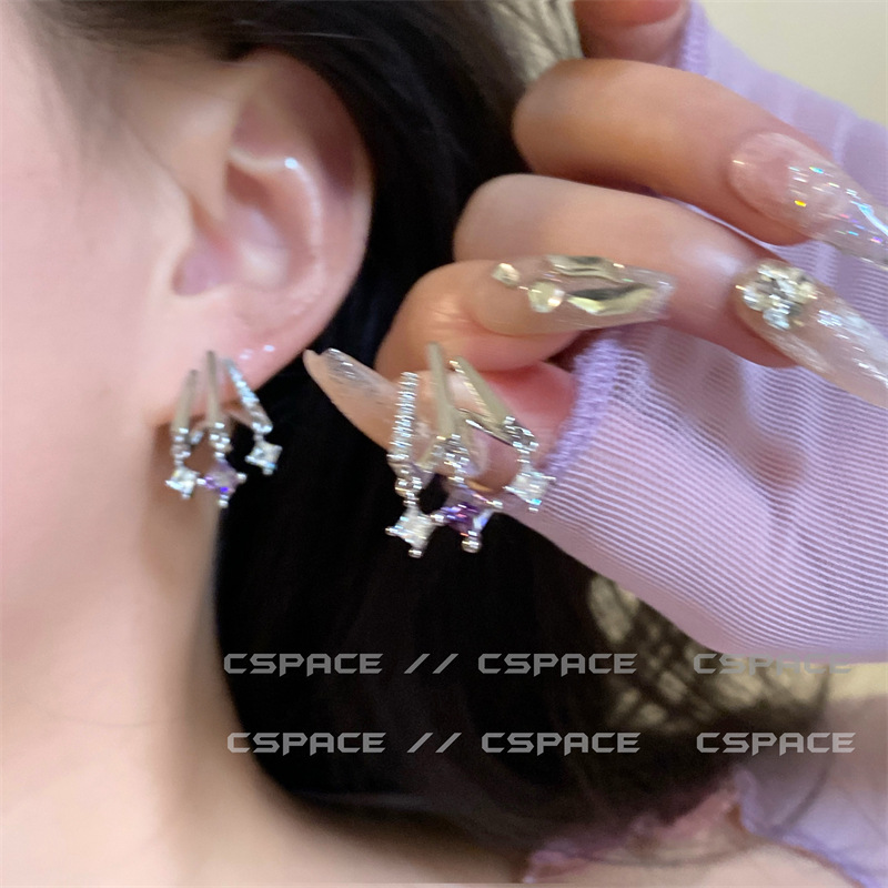 紫色のジルコンピアスが洗練されていて、高級感のあるイヤリング2023の新しい春夏気質イヤリング