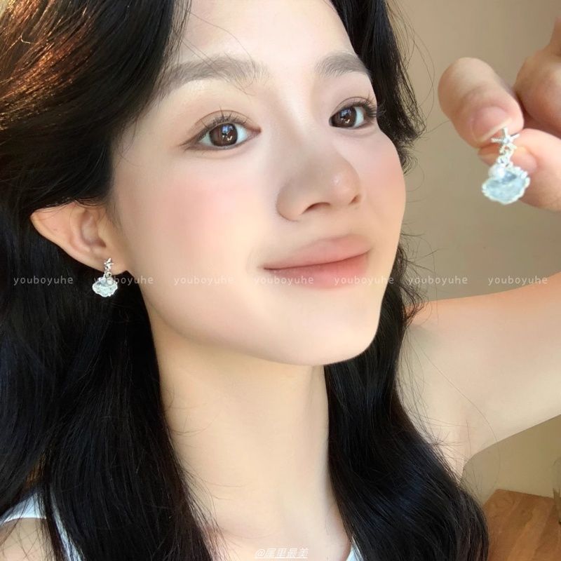 アイスブロークンブルーシェルパールイヤリング女性用、軽い高級感、ハイエンド、絶妙なヒトデイヤリング、ニッチデザイン、夏のイヤリング